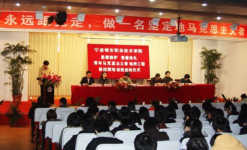 ——我院“青马”工程第四期培训班启动11月17日中午,“青年马克思主义者培养工程”第四期培训班启动仪式在艺术大楼报告厅举行。党委副书记、纪委书记程舟群,相关职能部门负责人,各二级学院学生工作负责人、团