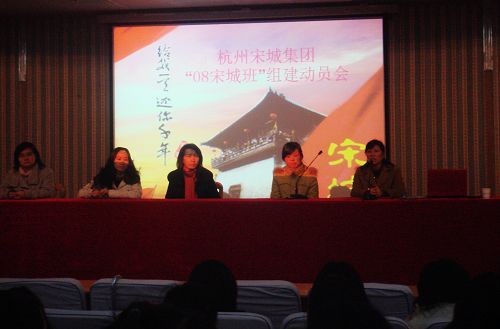 11月19日,旅游学院组织召开“08、09宋城班”组建动员会。杭州宋城集团常务副总赵雪璎女士及宋城集团名下的宋城景区、杭州乐园景区和第一世界大酒店人力资源部主管人员、旅游学院副院长舒卫英及相关负责人,