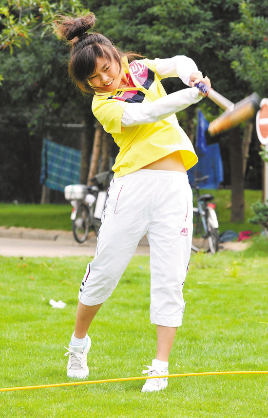 奋力挥杆。纸上谈兵同样生动。校园的一角,绿色的草坪上,几条塑料绳隔出一条条球道。10多个同学分成两队,趁着中午休息,正在起劲地练习如何挥杆击球。梁久学教授站在一旁仔细观察,发现哪位同学姿势不正确,他就