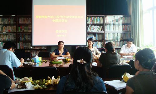 9月30日,管理学院举行“163工程”学生职业素质养成专题培训会,管理学院执行院长何俊峻、副院长李良波、党总支副书记童雪央和全体08、09级班主任参加了会议。培训会围绕学生职业素质养成“163工程”,