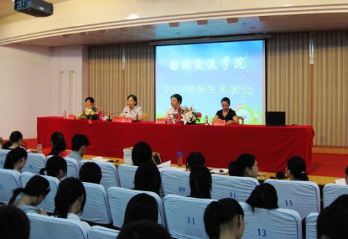 9月16日下午,国际交流学院2009级新生见面会在艺术楼报告厅举行,全体领导出席了此次见面会。见面会由党总支书记王媛渌主持。国际交流学院执行院长韩明波代表学院全体教职工对2009级283名新生表示热烈