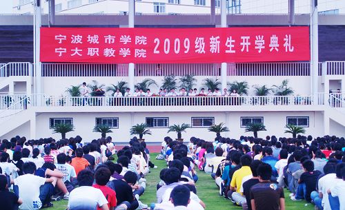 9月17日,我院2009级新生开学典礼在田径场隆重举行。宁波大学校长、宁波城市学院理事会理事长聂秋华、学院党委书记李维维、院长李太武、党委副书记程舟群、副院长颜炼钢、党委委员、院长助理潘菊素、校工会主