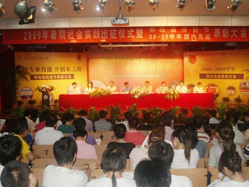校党委书记李维维为获得第四届技能节优秀组织奖的学院颁奖校党委副书记周国明为获得2008-2009学年先进团总支的学院颁奖校党委书记李维维为重点资助团队授旗7月30日,我院2009年暑期社会实践活动出征