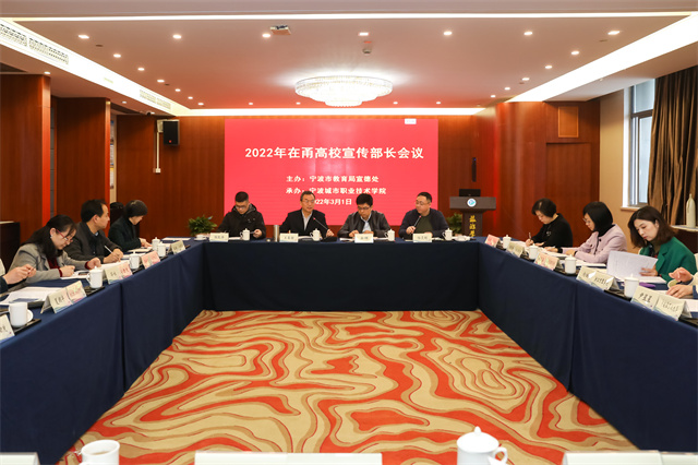 3月1日上午,2022年在甬高校宣传部长会议在我校召开。党委副书记王春潮、市教育局宣德处处长余辉出席会议并讲话。会议由市教育局宣德处副处长陆灵刚主持。王春潮致欢迎辞。他向各位领导和同仁的到来表示诚挚的