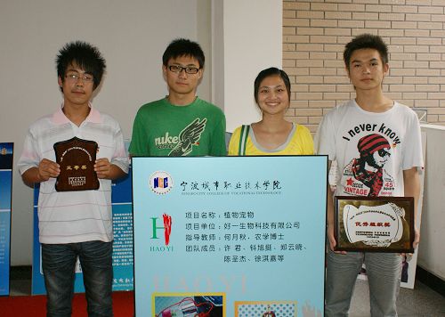 6月13日,由共青团宁波市委、宁波市教育局、宁波市科学技术协会和宁波市学生联合会共同举办的“沁园·挑战杯”2009年宁波市大学生创业计划竞赛在宁波工程学院落下帷幕,我院选送团队“好一生物科技有限公司”