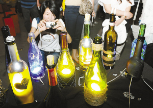 昨日,星空官方入口艺术学院2009届毕业生就业能力展示洽谈会在宁波美术馆举办,展出2000余件作品。图为利用废酒瓶设计制作的具环保理念的作品《寻瓶记》。文章来源:《东南商报》 2009年6月2