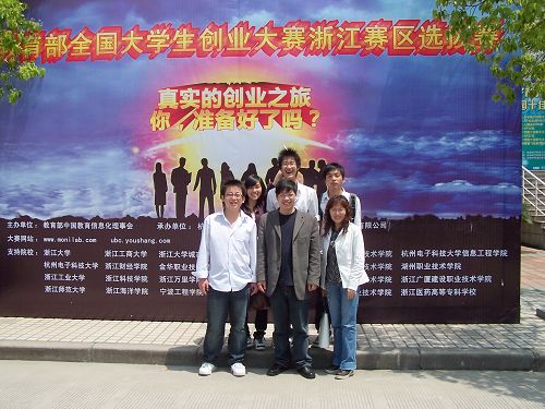 首届全国大学生创业大赛浙江赛区选拔赛于4月25日在杭州电子科技大学举行。经过激烈的角逐,我院代表队脱颖而出,获得了一等奖。代表队由07市销(2)班学生余鹏、林富源、孙丰,07工商(1)班学生杜幼美等四