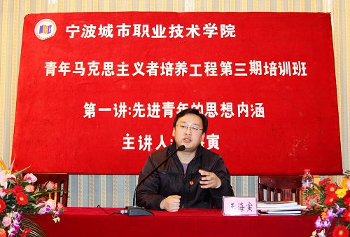 4月8日下午,我院“青年马克思主义者培养工程”第三期培训班第一讲在报告厅举行。团市委副书记王海寅为学员们作了“先进青年的思想内涵”的讲座,“青马”第三期培训班学员和各二级学院“青马”学员聆听了报告。王
