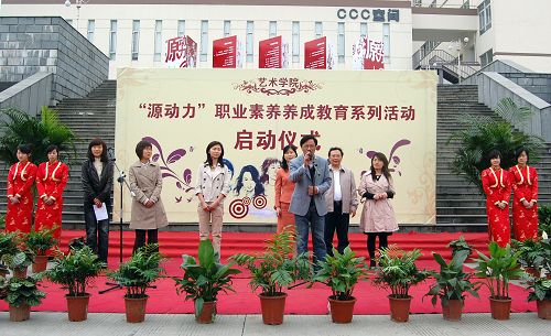 ——艺术学院“源动力”职业素养养成教育活动启动4月16日,艺术学院在校阳光广场举行了“源动力”职业素养养成教育活动的启动仪式。校党委副书记周国明,相关职能部门负责人,艺术学院领导、部分新生班主任及全体