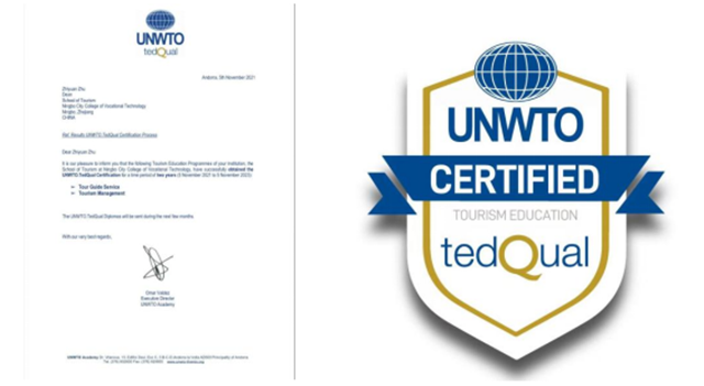 近日,旅游学院收到联合国世界旅游组织(World Tourism Organization, WTO)旅游教育质量认证中心的认证报告和信函,确认学院所申报的旅游管理、导游两个专