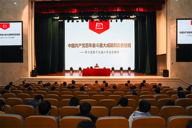 12月22日下午,学校举行党的十九届六中全会精神宣讲会,党委书记周国明作题为《中国共产党百年奋斗重大成就和历史经验——学习党的十九届六中全会精神》宣讲报告。周国明从深刻认识党的十九届六中全会议程和《决