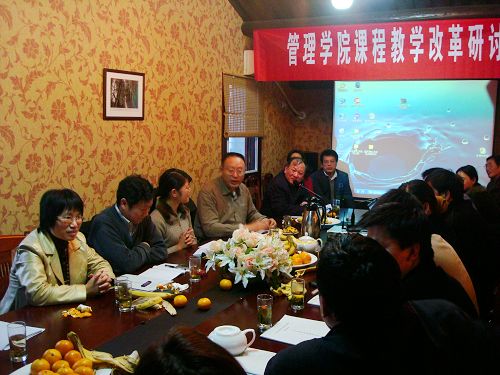 为全面推进课程教学改革,提高专业内涵建设质量,12月3日,管理学院召开教学改革研讨会,学院副院长钱理文、教务处/科研处处长潘菊素、处长助理任国灿、校督导王肇亨主任、管理学院领导及全体教师参加了本次会议