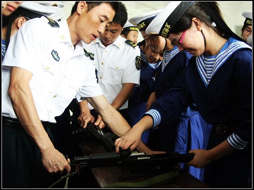 枪支拆装海军旗语操练6月13日下午,我院“青年马克思主义者培养工程”暨青年人才学院首期培训班之军事历练在东海少年军校正式开训。首期培训班的109名学员兴致高昂地走进少年军校,穿上蓝白相间的海军服,开始