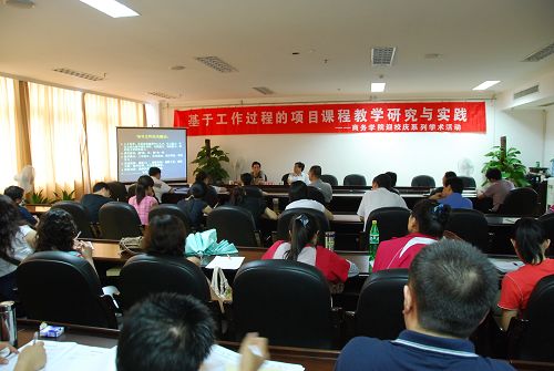 6月27日下午,商务学院迎校庆系列学术活动在行政楼三楼会议室正式启动。首场学术报告会邀请了省专家组成员、湖州职业技术学院高职教育研究所所长、我院特聘教授吴建设作了《基于工作过程的项目化课程教学研究与实