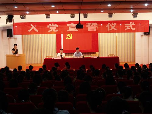 5月23日下午,在艺术楼报告厅举行了新党员入党宣誓仪式,学院党委书记楼玉琦、党委副书记周国明出席了仪式。共计330名学生党员在党旗下宣誓。宣誓仪式上,党委书记楼玉琦作了重要讲话,要求广大新党员同志要牢