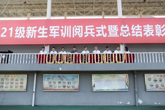 9月17日,2021级新生军训阅兵式暨总结表彰大会在田径场举行。新生们经过了为期10天的军训,所展现出来的昂扬的朝气、必胜的信念深深地感染了现场的我们。党委书记周国明、院长史习明等校领导,以及学校有关