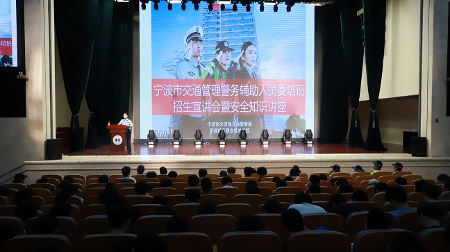 5月12日下午,我校启动与宁波市公安局交通警察局合作培养“交通辅警”工作。宁波市公安局交通警察局党委委员、副局长董晓波、宁波市公安局交通警察局辅警管理科中队长何建东等出席宣讲会,副院长潘菊素、教务处、