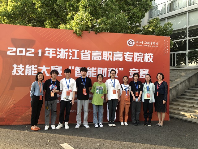 5月8日至9日,2021年浙江省高职高专院校技能大赛“智能财税”赛项在浙江金融职业学院举办,共有来自全省31所院校55支参赛队220名选手参加。由我校金婉珍、郑玲老师指导的黄倩倩、沈涛、朱潮燕、田海燕