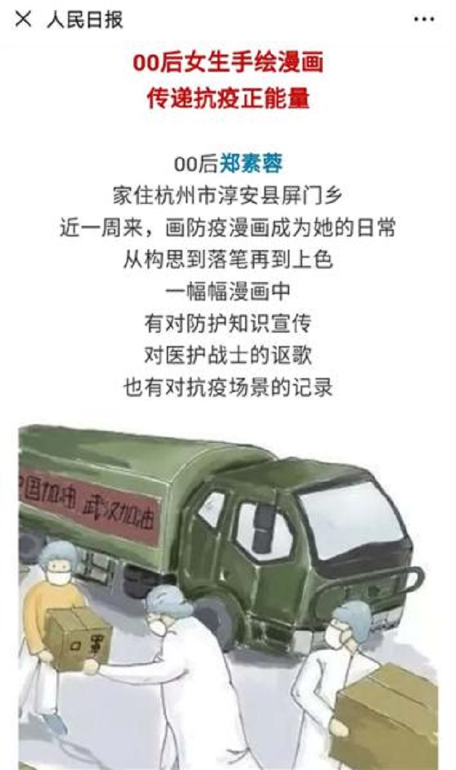《人民日报》、《光明网》、《中国教育新闻网》等8家媒体:人民日报点赞宁波00后女大学生:手绘漫画传递抗疫正能量