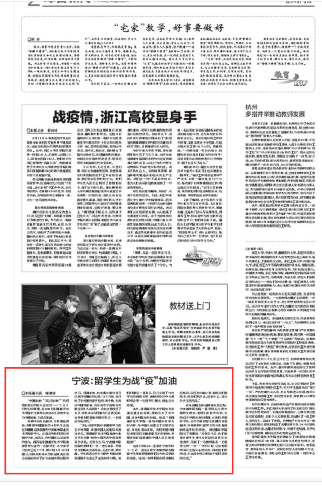 《浙江教育报》、《中国教育在线》等5家媒体:感动!宁波高校留学生返泰后用中文为中国加油