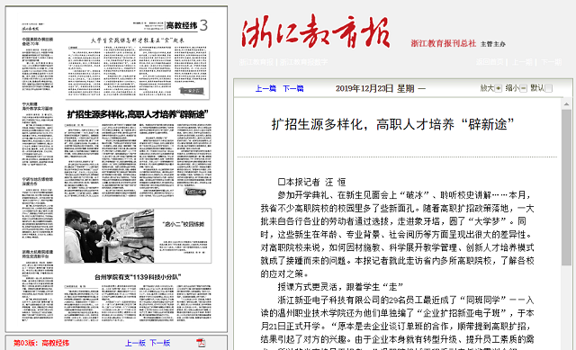 《浙江教育报》:扩招生源多样化,高职人才培养“辟新途”