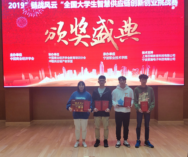 10月25日至27日,由中国商业经济学会主办的全国大学生智慧供应链创新创业挑战赛在宁波职业技术学院举行。经过三天的角逐,商学院物流管理专业四名百灵鸟战队队员荣获二等奖。 供应链比赛从报名至比赛结