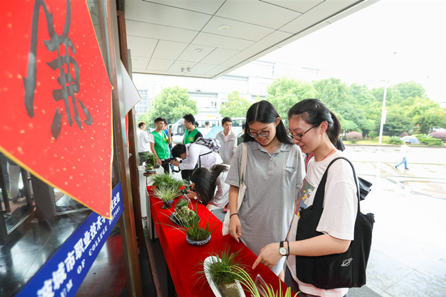 6月19日,星空官方入口景观生态学院园林技术专业崔广元老师精心培植多年的70多盆菖蒲盆景在该校校史馆前展出。菖蒲因其具有高洁内敛、节劲坚韧、不倚