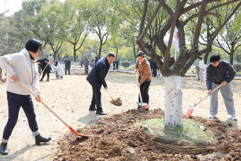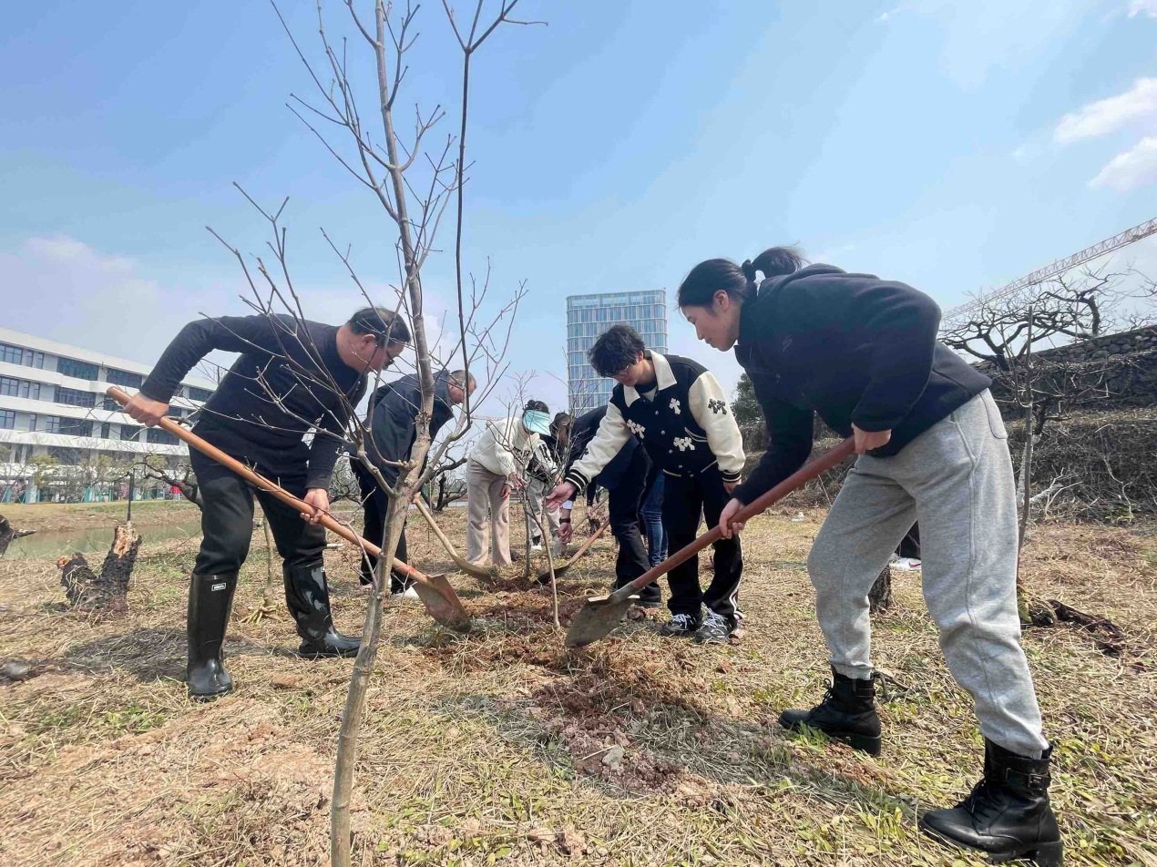 挥锹铲土、扶树正苗、浇水培土……校党委书记周国明带领师生与校友代表,在一派热火朝天的劳动景象中,种下一株株梅树,期待来年“梅园”赏梅。景观生态学院的师生代表则在奉化校区的桃山上种下了红枫树。