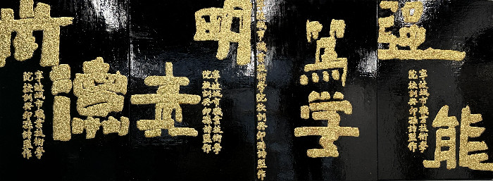 在学校鄞州校区,另一件以校训为灵感的创意作品同样引人瞩目。这是由该校2024届产品C班毕业生孙诗盟创作的漆器校训作品,它陈列在学校的艺术大楼内,成为了校园内的一道亮丽风景线。