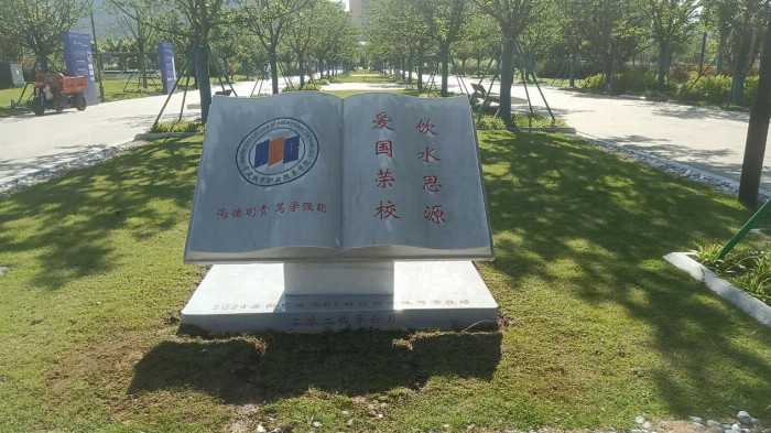 这块石碑设计精巧,形如一本敞开的书籍,左侧是庄重的校徽和校训,右侧则铭刻着“爱国荣校 饮水思源”的八字箴言,整体设计不仅展现了深厚的文化底蕴,还散发出独特的美学韵味。这是该校园艺K1村社班的毕业生们赠送给母校的毕业礼物。“‘尚德明责 笃学强能’的校训不仅是大学期间学校对同学们的期望和要求,更是同学们自我激励、一生践行的做人做事准则。”园艺K1村社班班主任刘峰老师介绍,同学们发挥自己的专业特长,将校训镌刻成永恒的艺术品,并选择在校园内的美学地标——樱花大道旁安放这座石碑,以此表达对母校深深的敬意和感激。同时,也希望让每一位走进校园的师生都能感受到校训的力量,激励他们不断追求卓越、奉献社会。