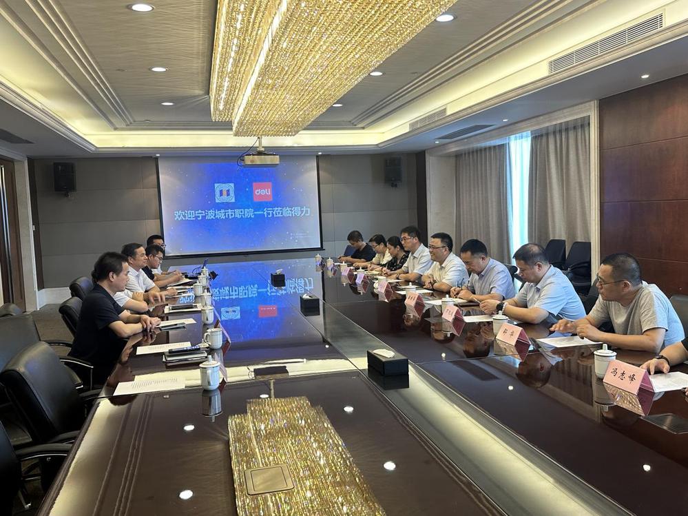 9月4日,副校长叶宏武一行赴得力集团交流调研,得力集团副总裁尤君伟等接待。
