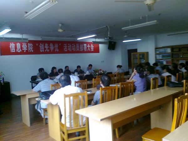 9月13日,信息学院在艺术大楼705召开党员创先争优活动动员部署大会,信息学院党总支成员、全体教工党员和学生党员等41人参加了会议。会议由党总支书记赵俊主持。