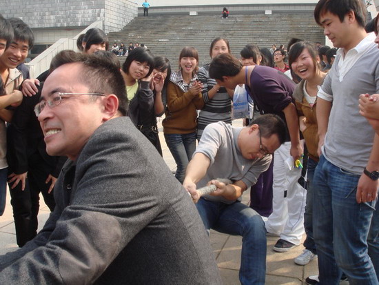2010年11月5日,信息学院成功举办了第三届师生趣味运动会。本次活动中,各支队伍本着“友谊第一、比赛第二” 的精神,选手之间相互协作,共同完成了“楚河汉界”师生拔河比赛、螃蟹背西瓜、“红五”对抗赛、“乒乓” 对抗赛、眼疾手快”五个项目的比赛。