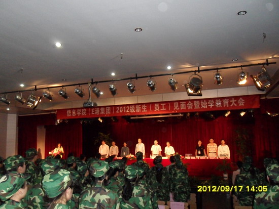 近期,E港集团针对自身专业特色,相继开展各类活动、讲座,助力新员工尽快融入新学期生活。9月17日下午,在校演艺大厅召开E港集团2012级新员工见面会暨始学教育大会。E港集团领导、全体教官、学院全体教师及442名新生参加了本次大会。