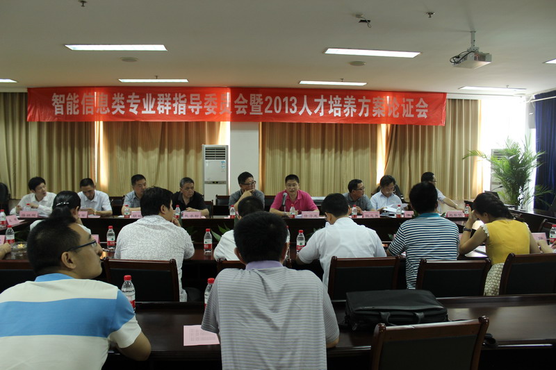 教务处处长祝志勇讲解了学校关于修订2013人才培养方案的方针政策和指导意见,信息学院副院长赵黎明向专家汇报了智能信息类专业群人才培养方案修订的总体思路,并着重在岗位递进培养、技术培养的落实、分类培养、专业综合能力提升等方面的实施路径进行解释说明。接着,各专业负责人就本专业人才培养方案进行了介绍,并重点阐述了2013人才培养方案相对之前人才培养方案所作的修改。