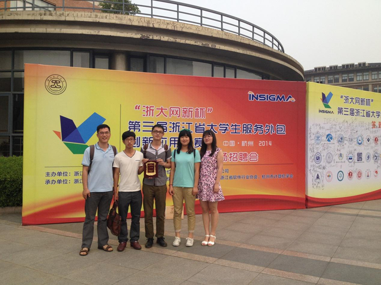6月6-7日,由浙江省教育厅、浙江省商务厅联合主办,由浙江工业大学承办的“浙大网新杯”第三届浙江省大学生服务外包创新应用大赛刚刚落下帷幕。此项比赛历时两个多月。经过网络初评以及紧张激烈的决赛,由信息学院李利杰、丁磊老师指导,戴传竹、曾伟、朱晓丹、王勤同学组成的“戴曾”团队荣获本次大赛一等奖,这也是唯一获得一等奖的高职院校竞赛队伍。