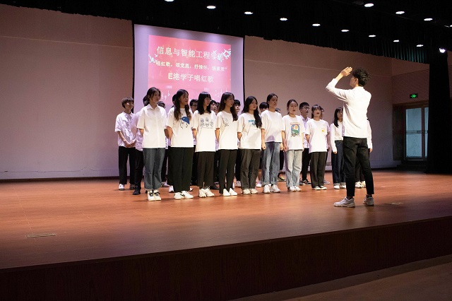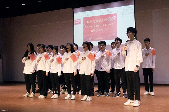 为庆祝中国共产党成立100周年,弘扬爱国精神,重温红色经典,6月7日,信息与智能工程学院举行 “E港学子唱红歌”比赛。学院党总支副书记赵怡、全体学工办辅导员出席本次比赛并担任评委。本次唱红歌活动,以“唱红歌、颂党恩、抒情怀、强素质”为主题,经过前期排练与选拔,共有9个班级进入决赛。