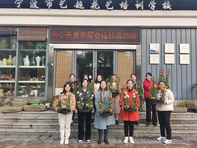 此次花艺培训由“艺花道”创始人,国家插花员一级技师郑全超老师授课,介绍了现代花艺、中国传统插花等方面的理论知识后,郑老师以直立平行式插花为例,向大家现场展示插花制作,女教师们则在郑老师的精心指导下,纷纷动手制作,现场气氛轻松,笑声不断。经过精巧的修剪与创意造型,最终大家都完成了精致美妙、富有诗情画意的插花作品。在四溢的生机和悠然的花香浸染间,老师们的脸上洋溢着幸福感和成就感。