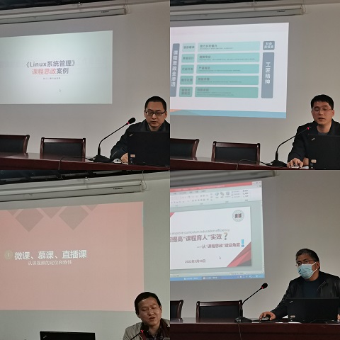 推进会中还进行了课程思政“学、评、议、辨”活动。教务处副处长杜恒杰老师结合自己的《数据库技术》课程做了“如何提高‘课程育人’实效”的分享,颜晨阳、李利杰两位老师分别介绍了各自的省级课程思政示范课程的建设内容和方法,郑哲老师老师分享了在线课程建设中信息技术应用的方法和经验。信息学院全体教师参加了活动,本次活动推进了学院新一轮课程思政建设的步伐。
