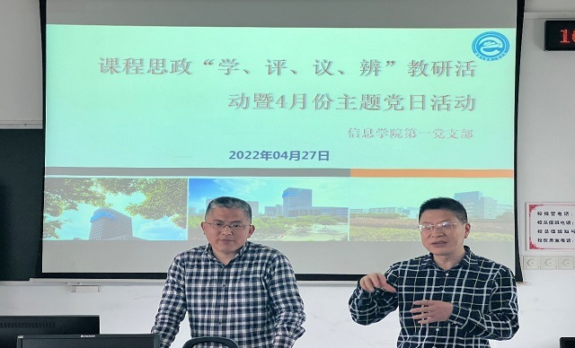 为推动课程思政走深走实,充分发掘各类课程和教学方式中蕴含的思想政治教育资源,4月27日,信息与智能工程学院第一党支部全体党员、计算机应用技术、计算机网络技术全体教师以“主题党日”活动的形式召开课程思政“学、评、议、辩”教学研讨,本次研讨还特别邀请了课程思政示范课申报人、教务处副处长杜恒杰参会。