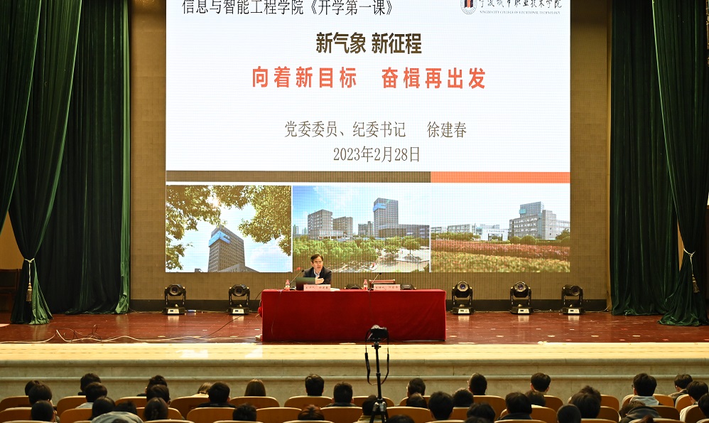 徐书记指出,过去十年,面对复杂的国内外环境,我国在科技、政治、经济、文化、扶贫等方面仍然取得了重大发展成就。回顾过去,展望未来,徐书记就2023年我校双高建设,分类培养,校企合作,产教融合,“一校两区”等重点工作做了全面梳理。对信息与智能工程学院2022年取得的亮眼成绩,徐书记表示高度赞扬。最后,他对信息与智能工程学院的全体同学提出三点希望:树立家国情怀,做一个时代的弄潮儿;多读书读好书,做一名内心充实的大学生;俯下身子,丈量宁波,读懂宁波。