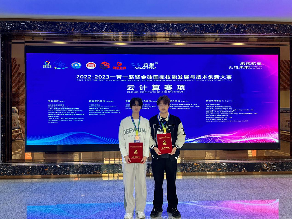 2022-2023“一带一路”暨金砖国家技能发展与技术创新大赛“云计算”赛项于3月30-31日在东营科技职业学院顺利举行。来自全国19个省71所高校的136支队伍同台竞技。信息与智能工程学院万旭成老师指导的王君亦荣获金牌,林聪老师指导的叶童荣获铜牌。