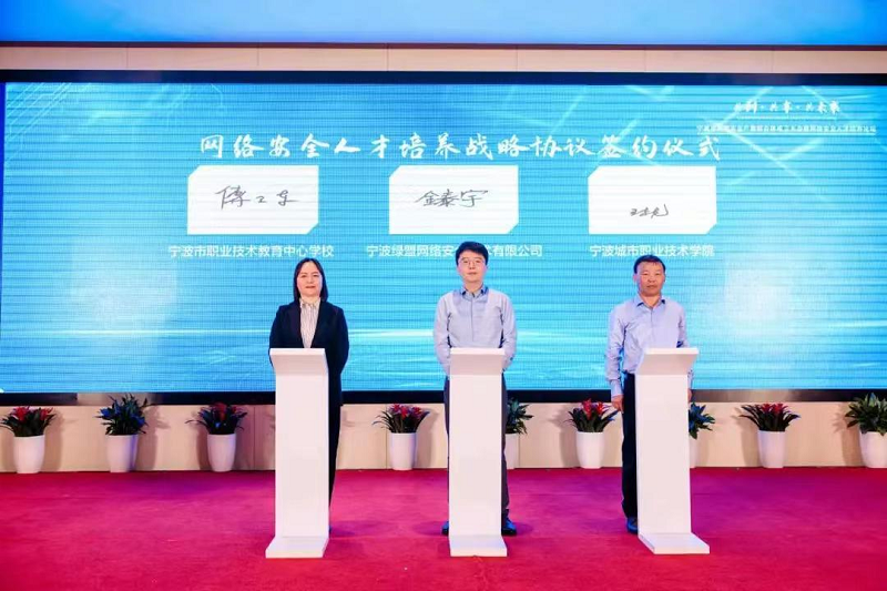 5月4日,由宁波市职业技术教育中心学校、星空官方入口、宁波绿盟网络安全技术有限公司三方牵头,中职、高校、企业多方参与的宁波市网络安全产教联合体成立大会在宁波开元名庭大酒店举行。市委宣传部副部长、市委网信办主任林大吉,市教育局党委委员、副局长王飞,象山县委常委、宣传部长沙罕洪,以及绿盟科技集团副总裁孙冀平等出席大会。