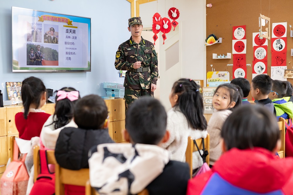 活动现场,英姿飒爽的兵哥哥们通过动画片向小朋友们介绍了雷锋,让小朋友们知道了雷锋是一名人人敬仰的解放军战士。兵哥哥们向小朋友分享了从军时乐于助人、奉献自我的事迹,一个个生动的讲述引得小朋友们纷纷鼓掌,并投来崇敬的目光。活动还特别设置了小小雷锋岗,兵哥哥们带领小朋友给社区居民发放垃圾分类、防电信诈骗等各类宣传资料。信息与智能工程学院的指导老师表示:“这样的活动我们会经常举办,让孩子们接受精神洗礼,切实传承好,发扬好雷锋精神,让红色基因薪火相传!”
