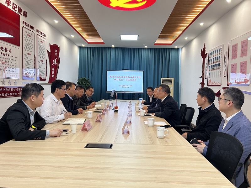 4月21日上午,南京信息职业技术学院党委委员、副校长杜庆波和宁波市工业互联网研究院赵凯一行5人来到学校信息与智能工程学院,考察产业学院建设工作。校党委委员、副校长王志龙等出席交流会。